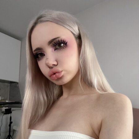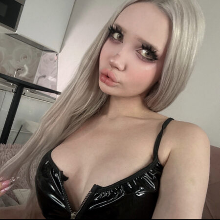 A hyper-feminine trans woman with a perfect face and a genuine feminine voice. Smooth, tattoo-free skin, completely submissive.