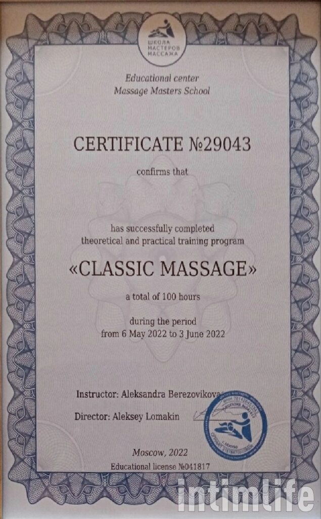 Мой диплом – это не просто бумажка, это ключ к вашему идеальному самочувствию. А еще – это доступ к целой вселенной массажных техник! Хотите классику, которая всегда в моде? Пожалуйста! Мечтаете о полном релаксе, чтобы улететь в космос на облаке блаженства? И это возможно! А что насчет прилива энергии, способного свернуть горы? Спортивный силовой массаж – ваш личный турбо-ускоритель!